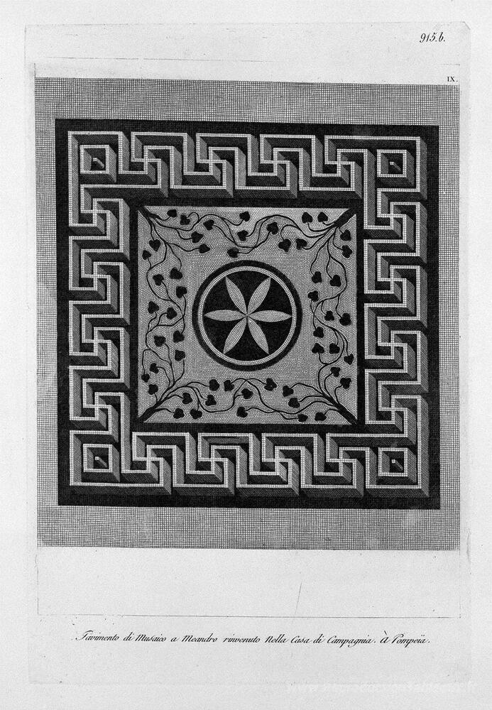 Nous vous proposons une reproduction artisanale sur toile du célèbre tableau 'Dans la maison de Pompéi, partie à l'étage du mur court dans la ' de Giovanni Battista Piranesi, provenant du Musée de la Reproduction.