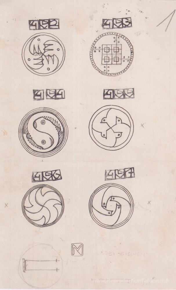 Nous vous proposons une reproduction artisanale sur toile du célèbre tableau 'Designs pour les broches en argent' de Koloman Moser, provenant du Musée de la Reproduction.