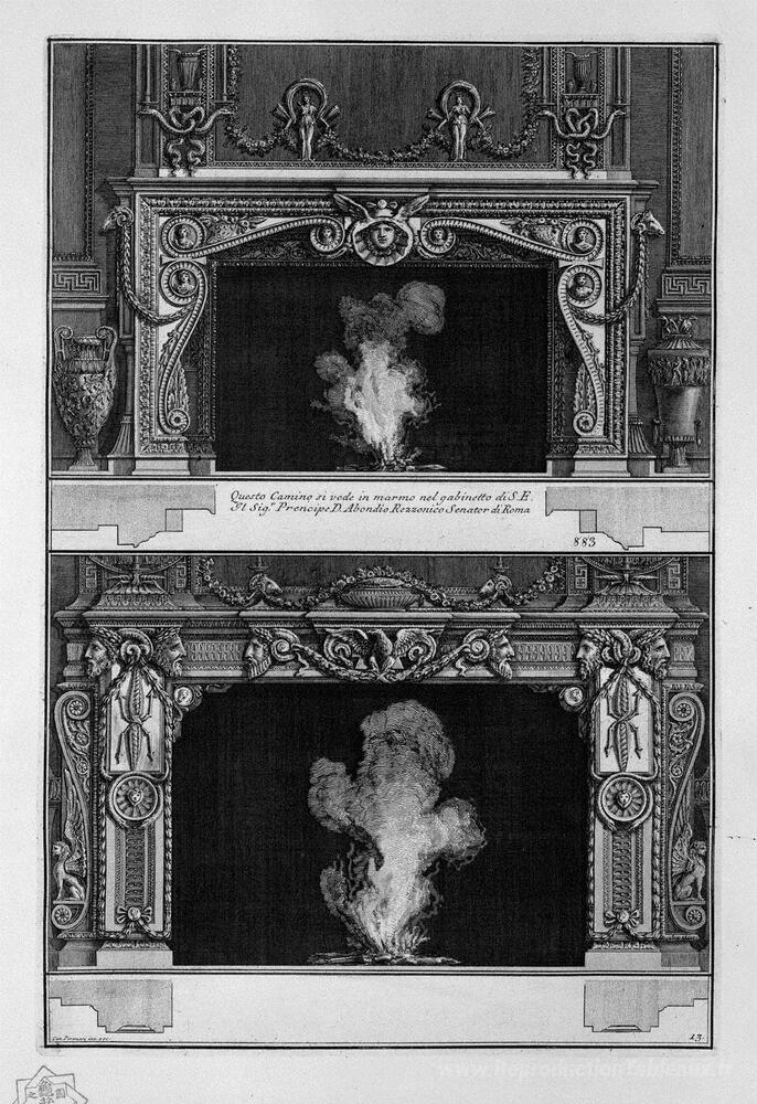 Nous vous proposons une reproduction artisanale sur toile du célèbre tableau 'Deux cheminées se chevauchent: le support avec un masque de médu' de Giovanni Battista Piranesi, provenant du Musée de la Reproduction.