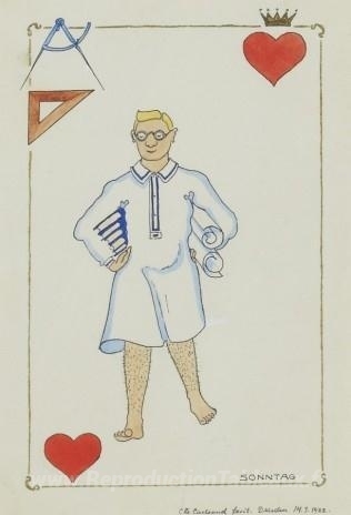 Nous vous proposons une reproduction artisanale sur toile du célèbre tableau 'Dresda spektrum: Hj?rter Kung' de Otto Gustav Carlsund, provenant du Musée de la Reproduction.