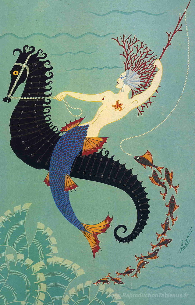 Nous vous proposons une reproduction artisanale sur toile du célèbre tableau 'Eau' de Erte, provenant du Musée de la Reproduction.