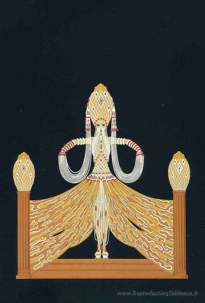 Nous vous proposons une reproduction artisanale sur toile du célèbre tableau 'Enchanteresse' de Erte, provenant du Musée de la Reproduction.