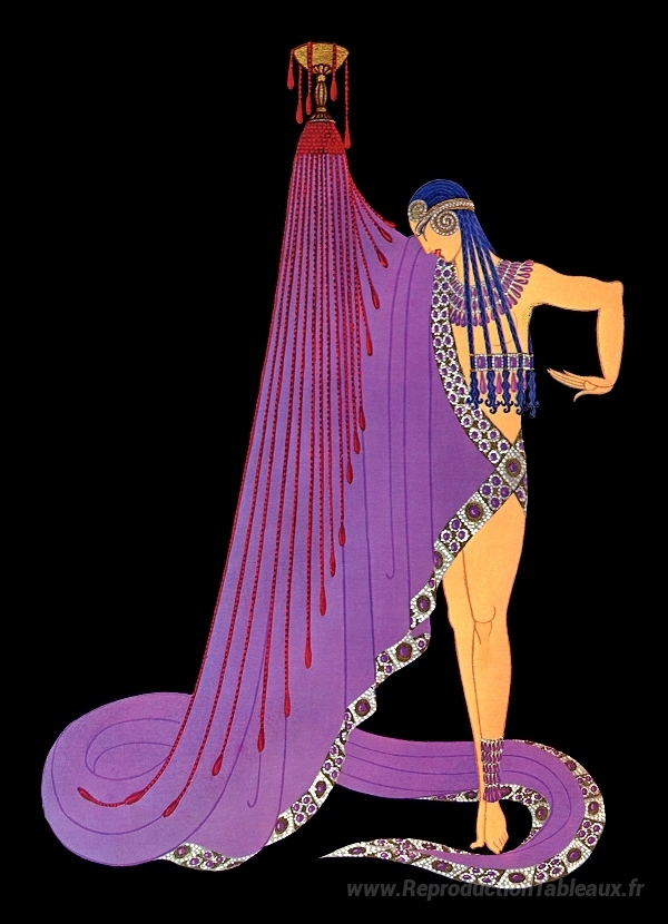 Nous vous proposons une reproduction artisanale sur toile du célèbre tableau 'Esclave de Salome, George Whites Scandales' de Erte, provenant du Musée de la Reproduction.