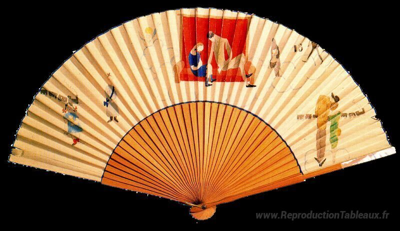 Nous vous proposons une reproduction artisanale sur toile du célèbre tableau 'Fan peint par l'artiste à Paris' de Carlos Saenz de Tejada, provenant du Musée de la Reproduction.