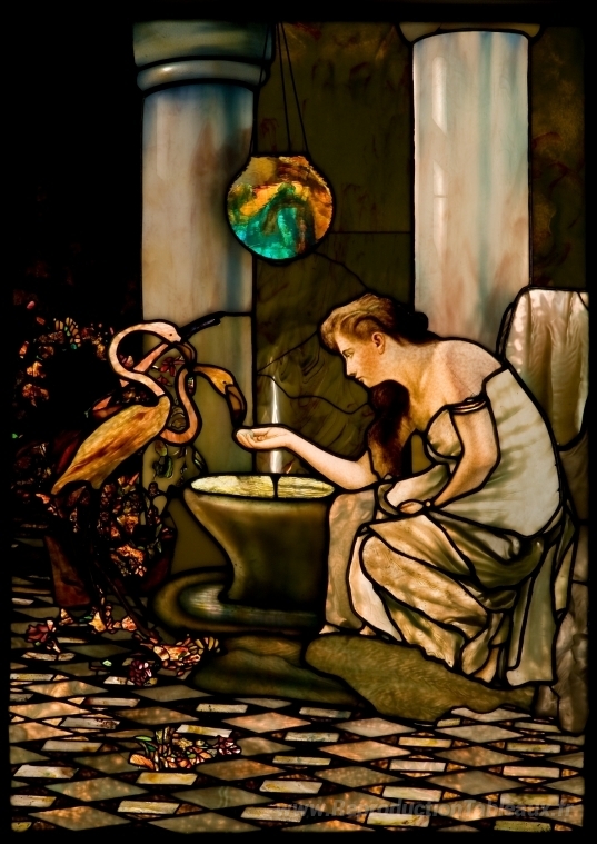 Nous vous proposons une reproduction artisanale sur toile du célèbre tableau 'Fenêtre' de Louis Comfort Tiffany, provenant du Musée de la Reproduction.