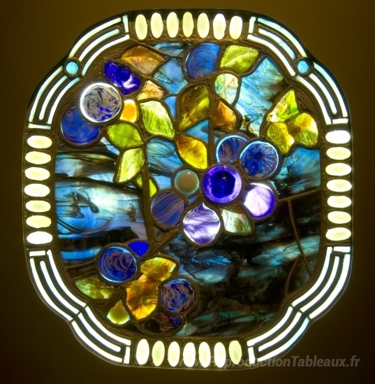 Nous vous proposons une reproduction artisanale sur toile du célèbre tableau 'Fenêtre' de Louis Comfort Tiffany, provenant du Musée de la Reproduction.