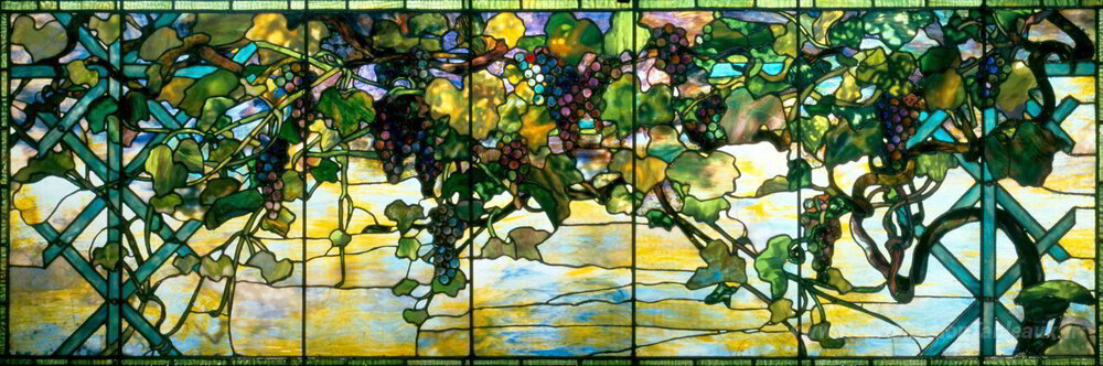Nous vous proposons une reproduction artisanale sur toile du célèbre tableau 'Fenêtre' de Louis Comfort Tiffany, provenant du Musée de la Reproduction.