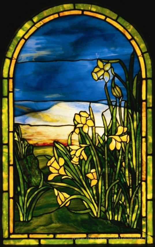 Nous vous proposons une reproduction artisanale sur toile du célèbre tableau 'Fenêtre' de Louis Comfort Tiffany, provenant du Musée de la Reproduction.