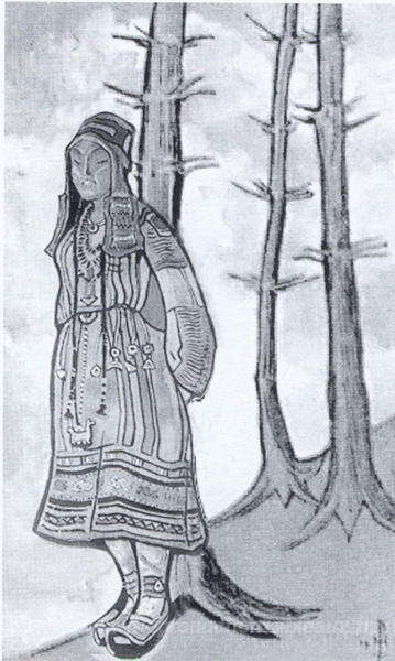 Nous vous proposons une reproduction artisanale sur toile du célèbre tableau 'Fille' de Nicholas Roerich, provenant du Musée de la Reproduction.