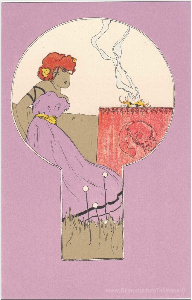 Nous vous proposons une reproduction artisanale sur toile du célèbre tableau 'Filles avec des environs violets' de Raphael Kirchner, provenant du Musée de la Reproduction.