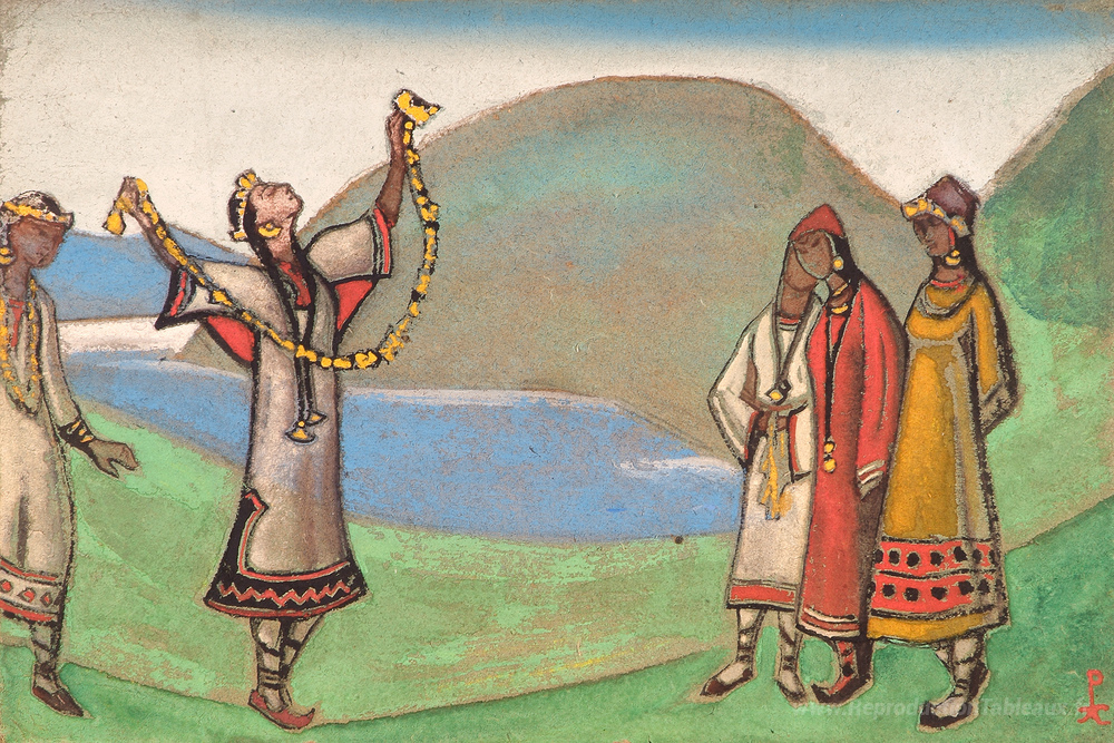 Nous vous proposons une reproduction artisanale sur toile du célèbre tableau 'Filles' de Nicholas Roerich, provenant du Musée de la Reproduction.