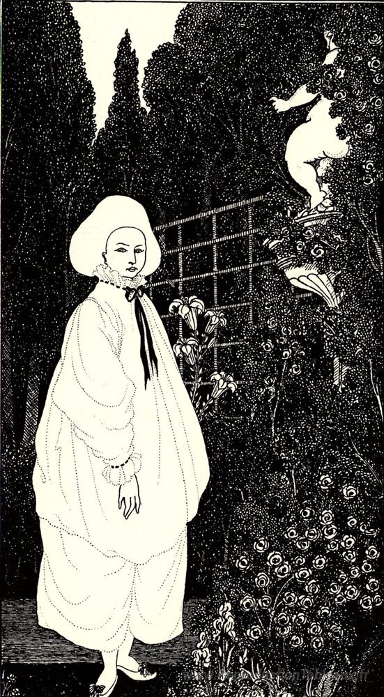 Nous vous proposons une reproduction artisanale sur toile du célèbre tableau 'Frontispice de "Le Pierrot de la minute"' de Aubrey Beardsley, provenant du Musée de la Reproduction.