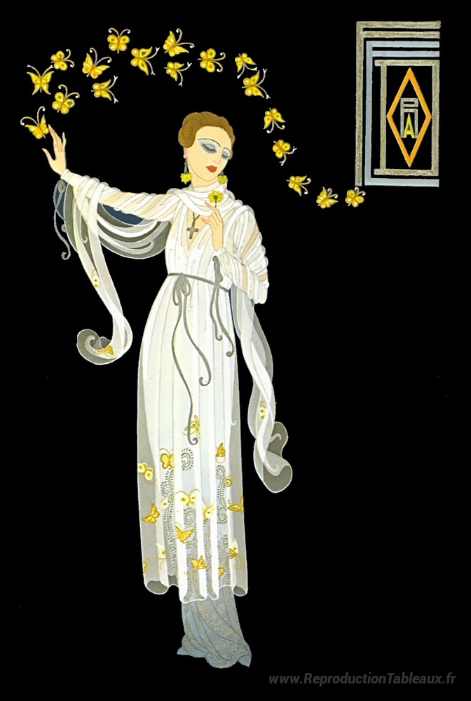 Nous vous proposons une reproduction artisanale sur toile du célèbre tableau 'Ganna Walska à Fedora' de Erte, provenant du Musée de la Reproduction.