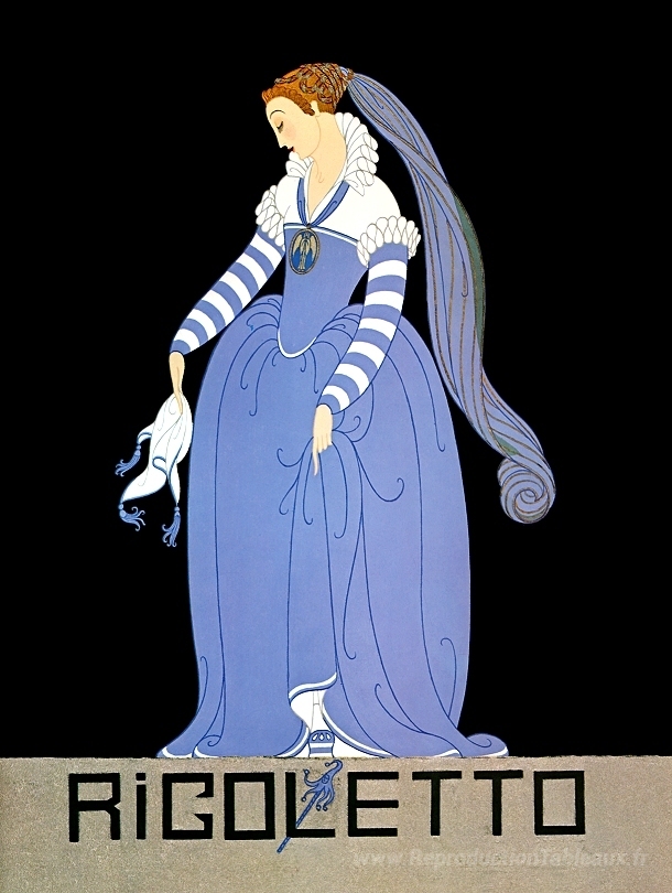 Nous vous proposons une reproduction artisanale sur toile du célèbre tableau 'Ganna Walska à Rigoletto' de Erte, provenant du Musée de la Reproduction.
