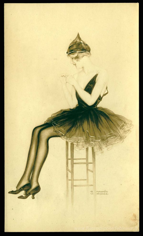 Nous vous proposons une reproduction artisanale sur toile du célèbre tableau 'Inconnu' de Raphael Kirchner, provenant du Musée de la Reproduction.