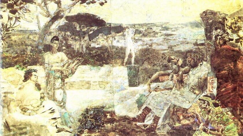 Nous vous proposons une reproduction artisanale sur toile du célèbre tableau 'Italie. Scènes de la vie ancienne. (Sketch pour le rideau dans l' de Mikhail Vrubel, provenant du Musée de la Reproduction.