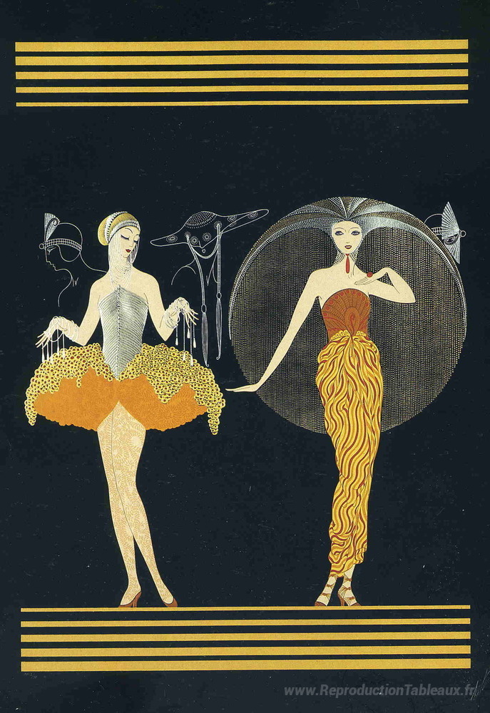 Nous vous proposons une reproduction artisanale sur toile du célèbre tableau 'Jour du matin' de Erte, provenant du Musée de la Reproduction.