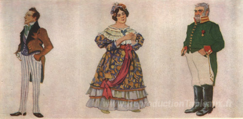 Nous vous proposons une reproduction artisanale sur toile du célèbre tableau 'Khlestakov, Anna Andreevna, Gorodnichiy' de Konstantin Yuon, provenant du Musée de la Reproduction.