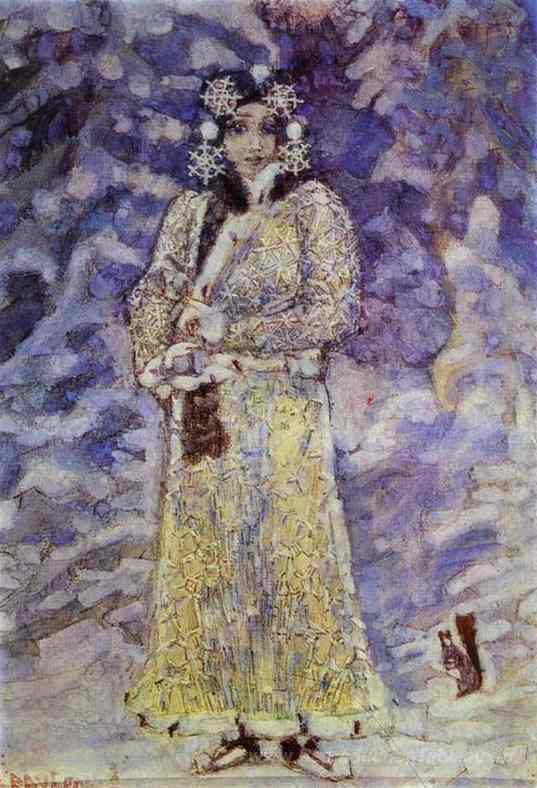 Nous vous proposons une reproduction artisanale sur toile du célèbre tableau 'La Maiden Snow' de Mikhail Vrubel, provenant du Musée de la Reproduction.