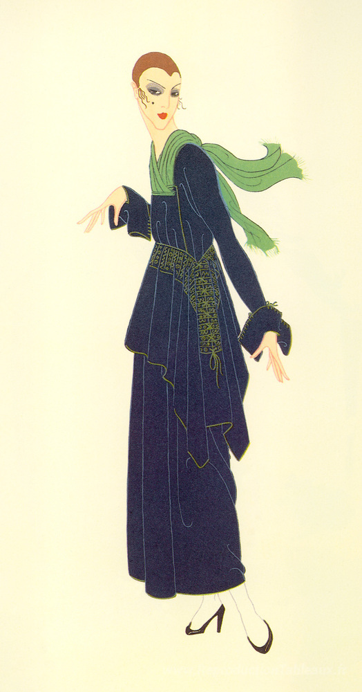 Nous vous proposons une reproduction artisanale sur toile du célèbre tableau 'La robe bleue' de Erte, provenant du Musée de la Reproduction.