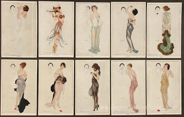 Nous vous proposons une reproduction artisanale sur toile du célèbre tableau 'L'amour de Pierrot' de Raphael Kirchner, provenant du Musée de la Reproduction.