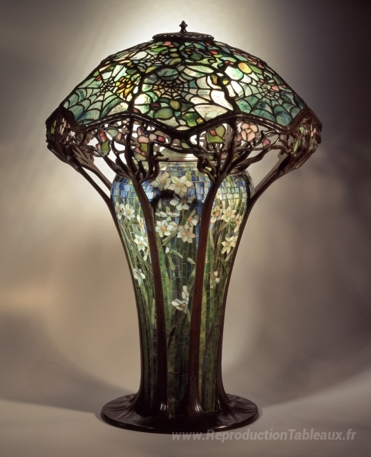 Nous vous proposons une reproduction artisanale sur toile du célèbre tableau 'Lampe de bibliothèque. Conception d'araignée' de Louis Comfort Tiffany, provenant du Musée de la Reproduction.