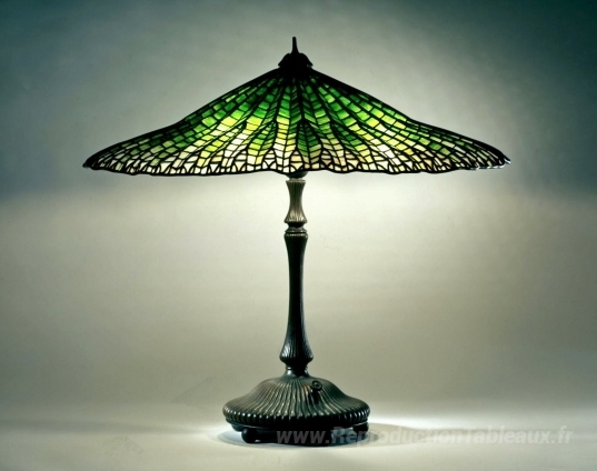 Nous vous proposons une reproduction artisanale sur toile du célèbre tableau 'Lampe de bibliothèque. Lotus, conception de pagode' de Louis Comfort Tiffany, provenant du Musée de la Reproduction.