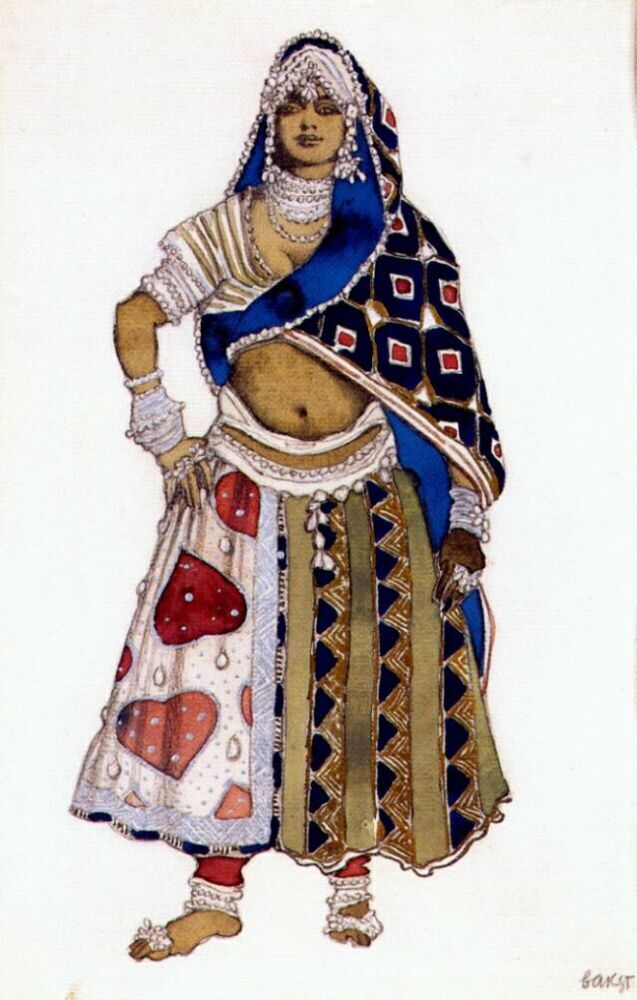 Nous vous proposons une reproduction artisanale sur toile du célèbre tableau 'Le Deuu Bleu Bayadere' de Leon Bakst, provenant du Musée de la Reproduction.