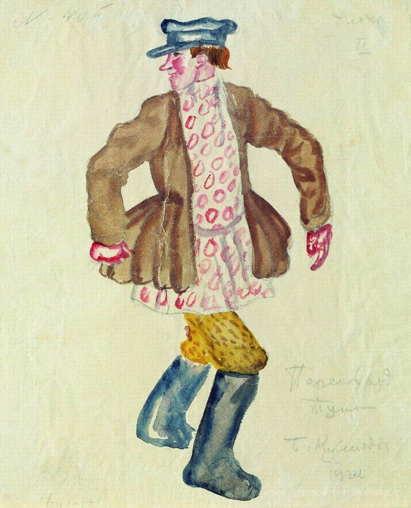 Nous vous proposons une reproduction artisanale sur toile du célèbre tableau 'Le gars de Tula' de Boris Kustodiev, provenant du Musée de la Reproduction.