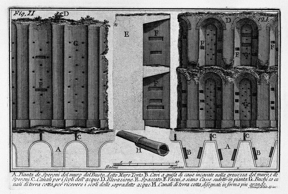 Nous vous proposons une reproduction artisanale sur toile du célèbre tableau 'Les antiquités romaines, t. 1, planche XI. Mur aurélien: Muro To' de Giovanni Battista Piranesi, provenant du Musée de la Reproduction.