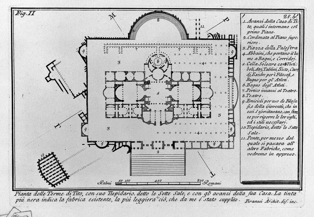 Nous vous proposons une reproduction artisanale sur toile du célèbre tableau 'Les antiquités romaines, t. 1, planche xxvii. "Baths of Titus" (' de Giovanni Battista Piranesi, provenant du Musée de la Reproduction.