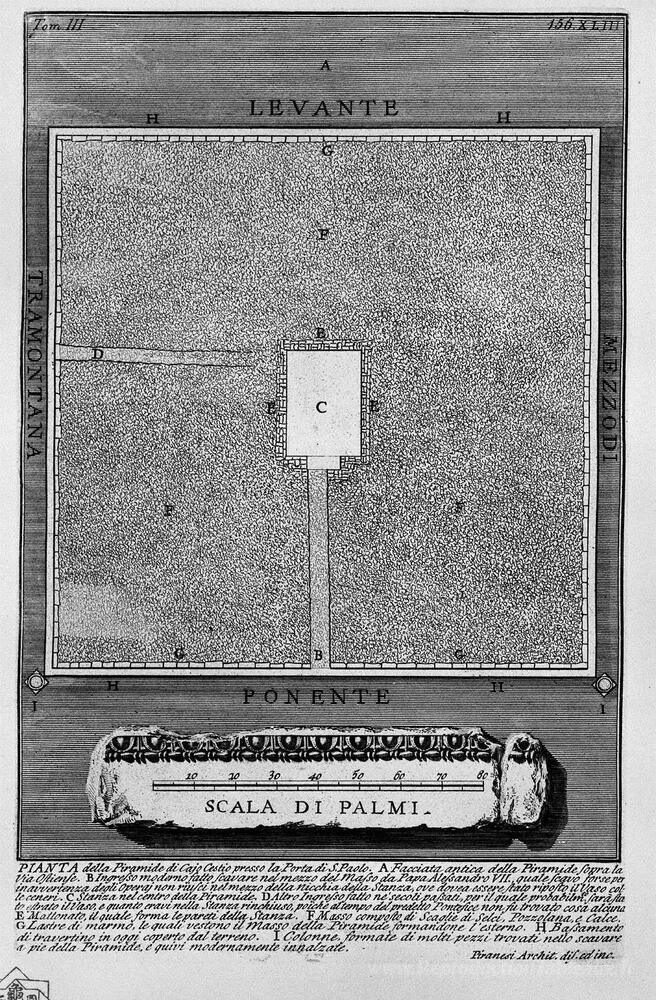 Nous vous proposons une reproduction artisanale sur toile du célèbre tableau 'Les antiquités romaines, t. 3, plaque xliv. Pyramide de Caius Ce' de Giovanni Battista Piranesi, provenant du Musée de la Reproduction.