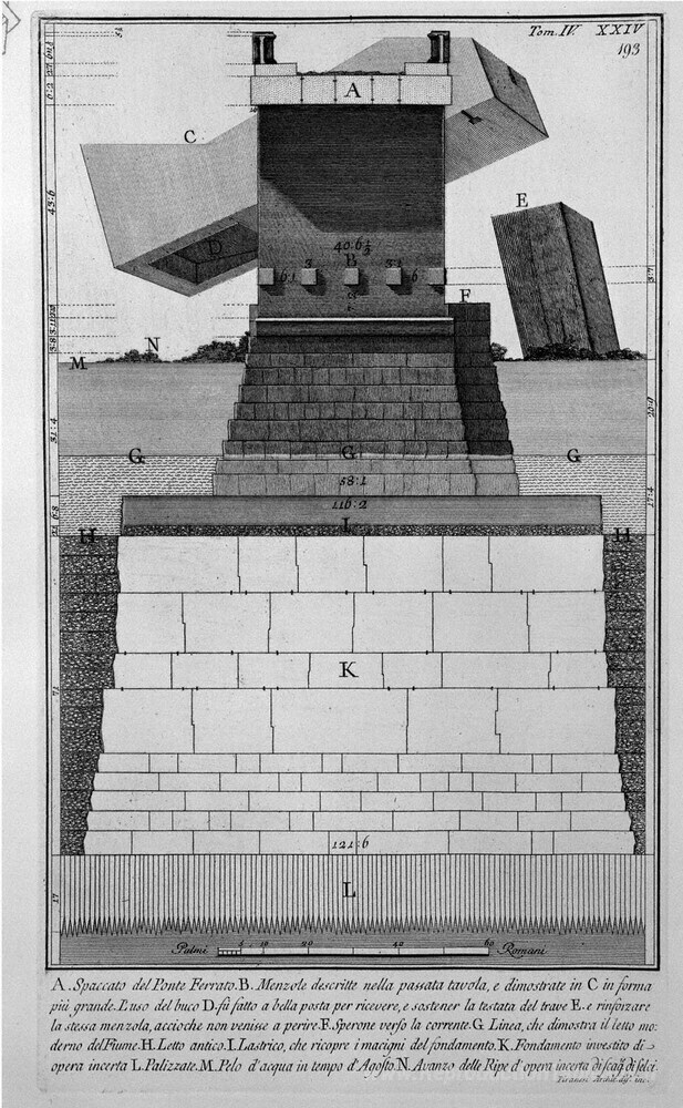 Nous vous proposons une reproduction artisanale sur toile du célèbre tableau 'Les antiquités romaines, t. 4, planche xxiv. Élévation du pont e' de Giovanni Battista Piranesi, provenant du Musée de la Reproduction.