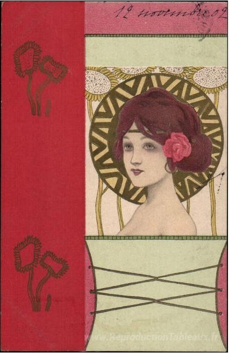 Nous vous proposons une reproduction artisanale sur toile du célèbre tableau 'Les filles face à la frontière rouge' de Raphael Kirchner, provenant du Musée de la Reproduction.