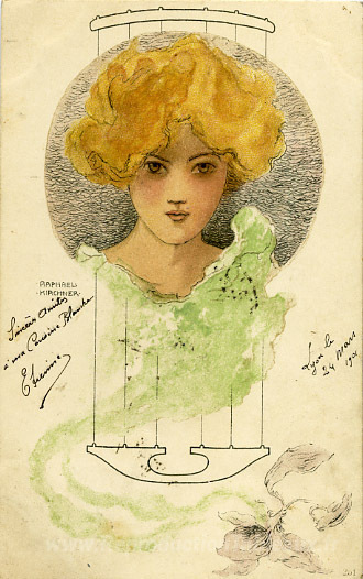 Nous vous proposons une reproduction artisanale sur toile du célèbre tableau 'Les filles têtes en cercle' de Raphael Kirchner, provenant du Musée de la Reproduction.