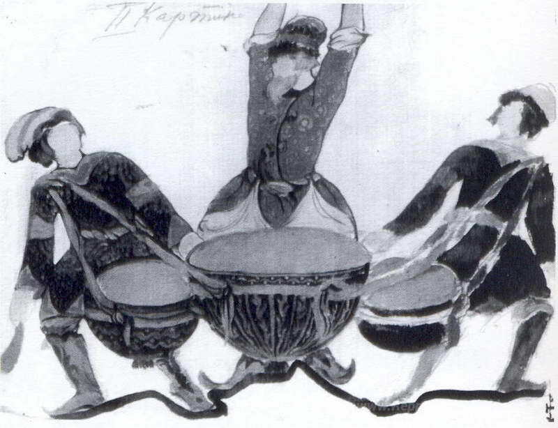 Nous vous proposons une reproduction artisanale sur toile du célèbre tableau 'Les musiciens' de Nicholas Roerich, provenant du Musée de la Reproduction.