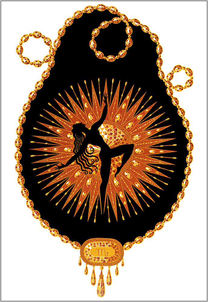 Nous vous proposons une reproduction artisanale sur toile du célèbre tableau 'Les pierres précieuses, topaze' de Erte, provenant du Musée de la Reproduction.