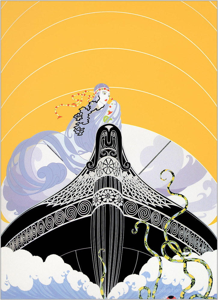 Nous vous proposons une reproduction artisanale sur toile du célèbre tableau 'Les surprises de la mer' de Erte, provenant du Musée de la Reproduction.