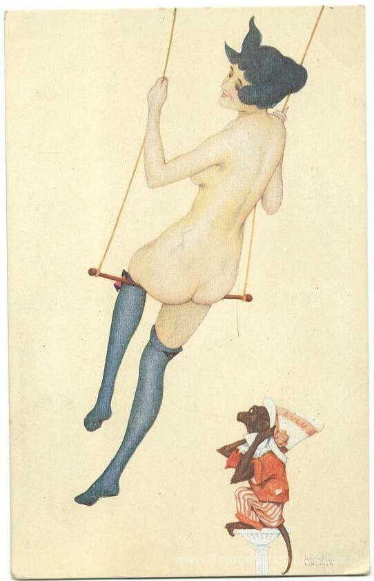 Nous vous proposons une reproduction artisanale sur toile du célèbre tableau 'Lulu' de Raphael Kirchner, provenant du Musée de la Reproduction.