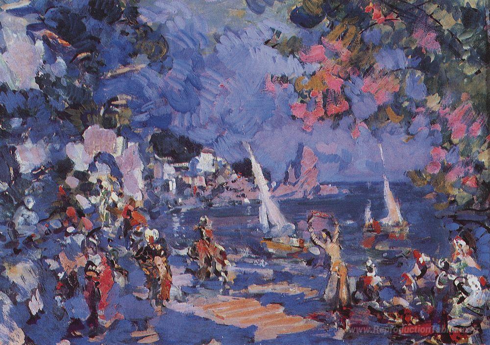 Nous vous proposons une reproduction artisanale sur toile du célèbre tableau 'Marché des esclaves orientaux.' de Konstantin Korovin, provenant du Musée de la Reproduction.