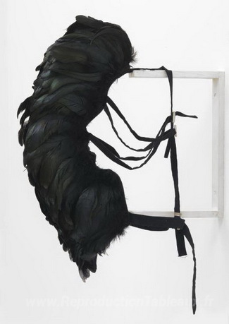 Nous vous proposons une reproduction artisanale sur toile du célèbre tableau 'Masque de cockfeather' de Rebecca Horn, provenant du Musée de la Reproduction.