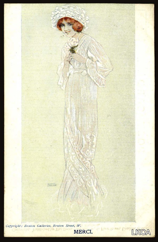 Nous vous proposons une reproduction artisanale sur toile du célèbre tableau 'Merci II' de Raphael Kirchner, provenant du Musée de la Reproduction.