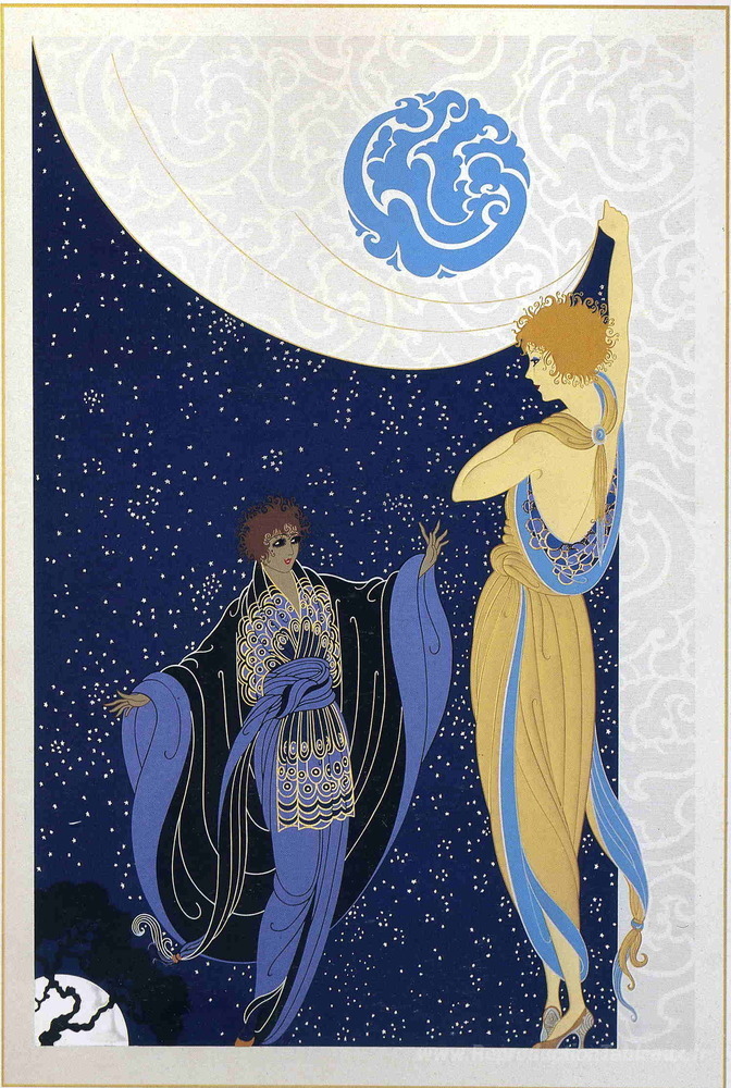 Nous vous proposons une reproduction artisanale sur toile du célèbre tableau 'Notturno' de Erte, provenant du Musée de la Reproduction.
