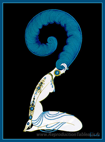 Nous vous proposons une reproduction artisanale sur toile du célèbre tableau 'Numéro 2' de Erte, provenant du Musée de la Reproduction.