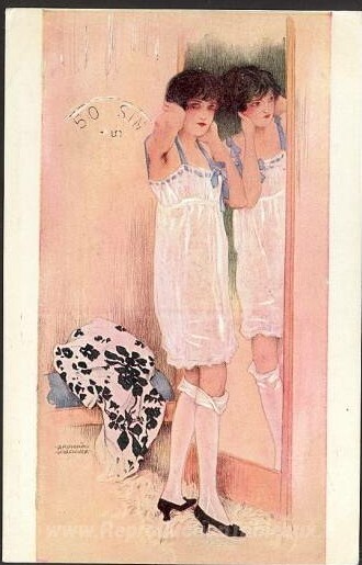 Nous vous proposons une reproduction artisanale sur toile du célèbre tableau 'Objets uniques' de Raphael Kirchner, provenant du Musée de la Reproduction.