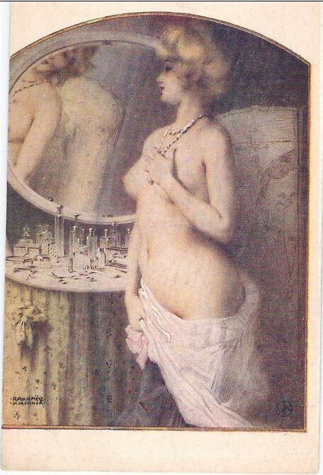 Nous vous proposons une reproduction artisanale sur toile du célèbre tableau 'Objets uniques' de Raphael Kirchner, provenant du Musée de la Reproduction.