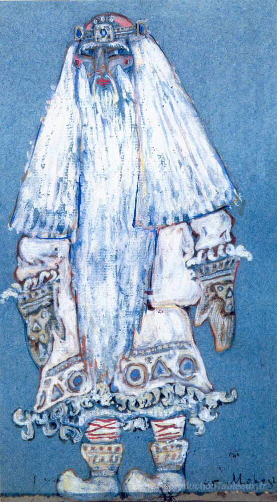 Nous vous proposons une reproduction artisanale sur toile du célèbre tableau 'Père froid' de Nicholas Roerich, provenant du Musée de la Reproduction.
