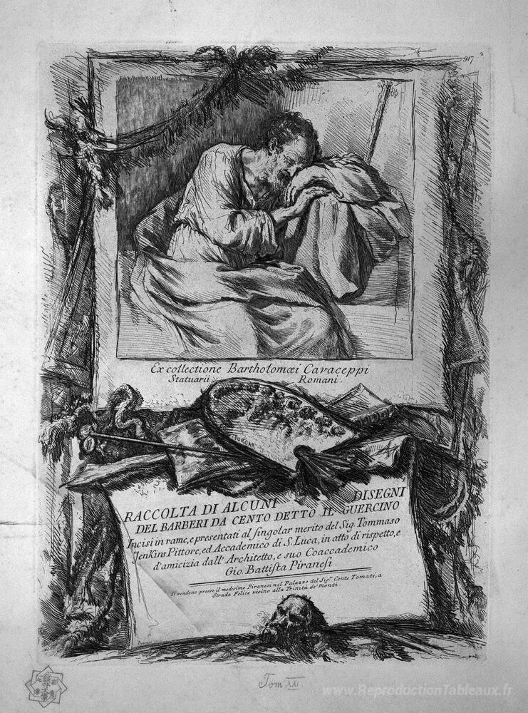Nous vous proposons une reproduction artisanale sur toile du célèbre tableau 'Page de titre: Collection de plusieurs dessins gravés après Barb' de Giovanni Battista Piranesi, provenant du Musée de la Reproduction.