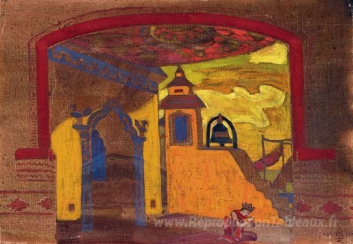 Nous vous proposons une reproduction artisanale sur toile du célèbre tableau 'Palais des ledens' de Nicholas Roerich, provenant du Musée de la Reproduction.
