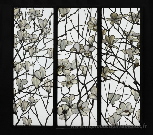 Nous vous proposons une reproduction artisanale sur toile du célèbre tableau 'Panneaux de fenêtre' de Louis Comfort Tiffany, provenant du Musée de la Reproduction.